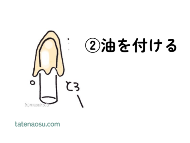 ワセリンやサラダ油、オリーブオイルなどを、先端に少し塗ります。